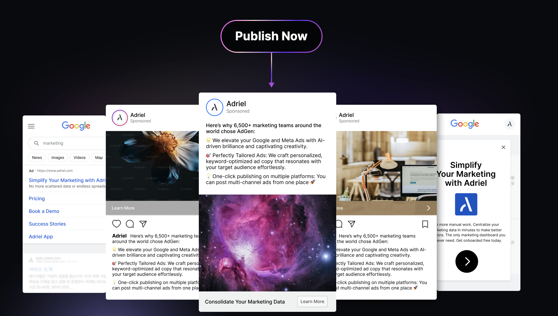 Phát hành Quảng cáo trên Nhiều Nền Tảng: Quản lý và phát hành quảng cáo trên các nền tảng Meta Ads, Google Ads và nhiều kênh khác trực tiếp từ AdGen AI. Không cần tải xuống hoặc lưu trữ quảng cáo riêng lẻ, giúp bạn tiết kiệm thời gian và công sức.