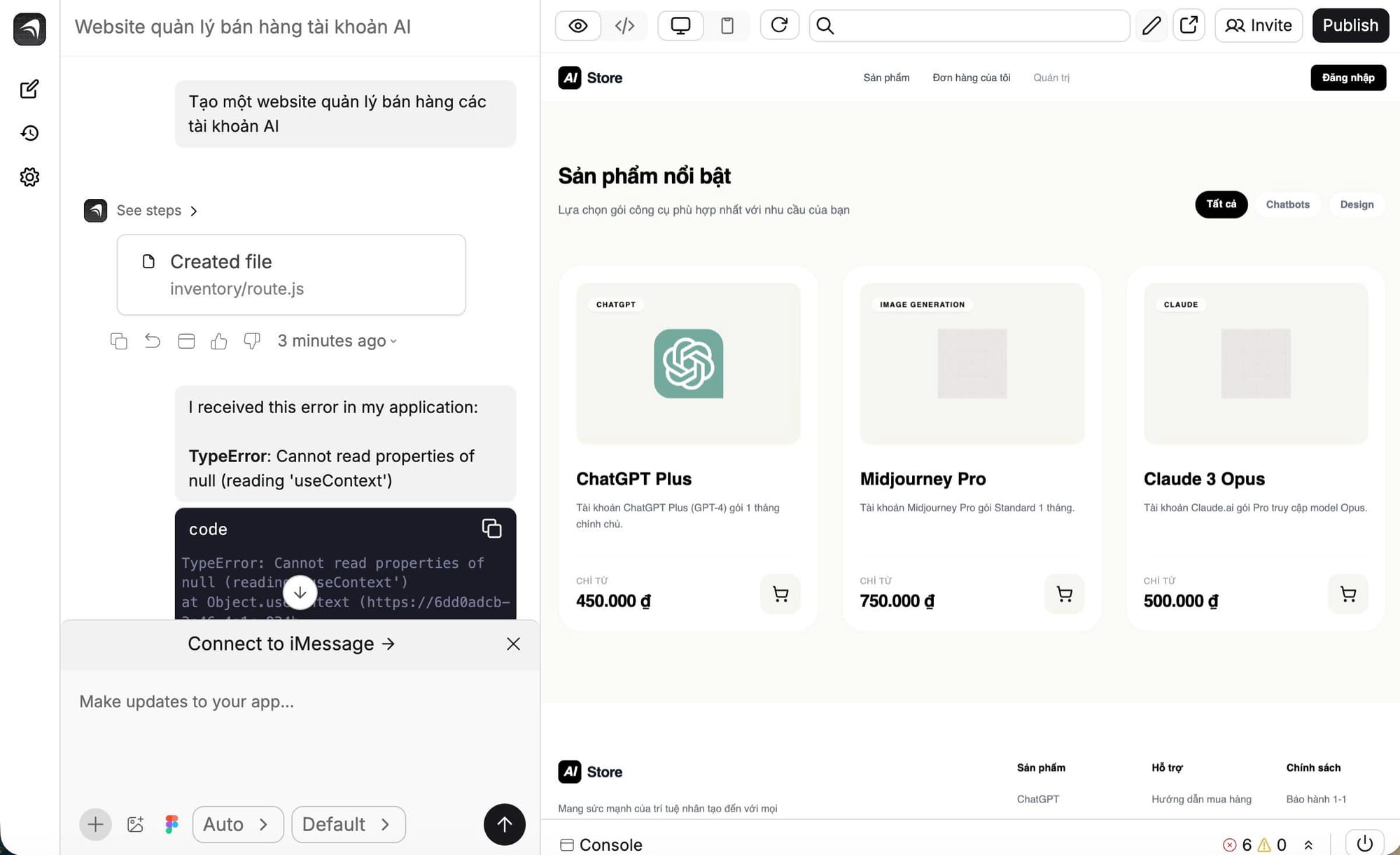 🔹 Bước 3: AI bắt đầu build tự động