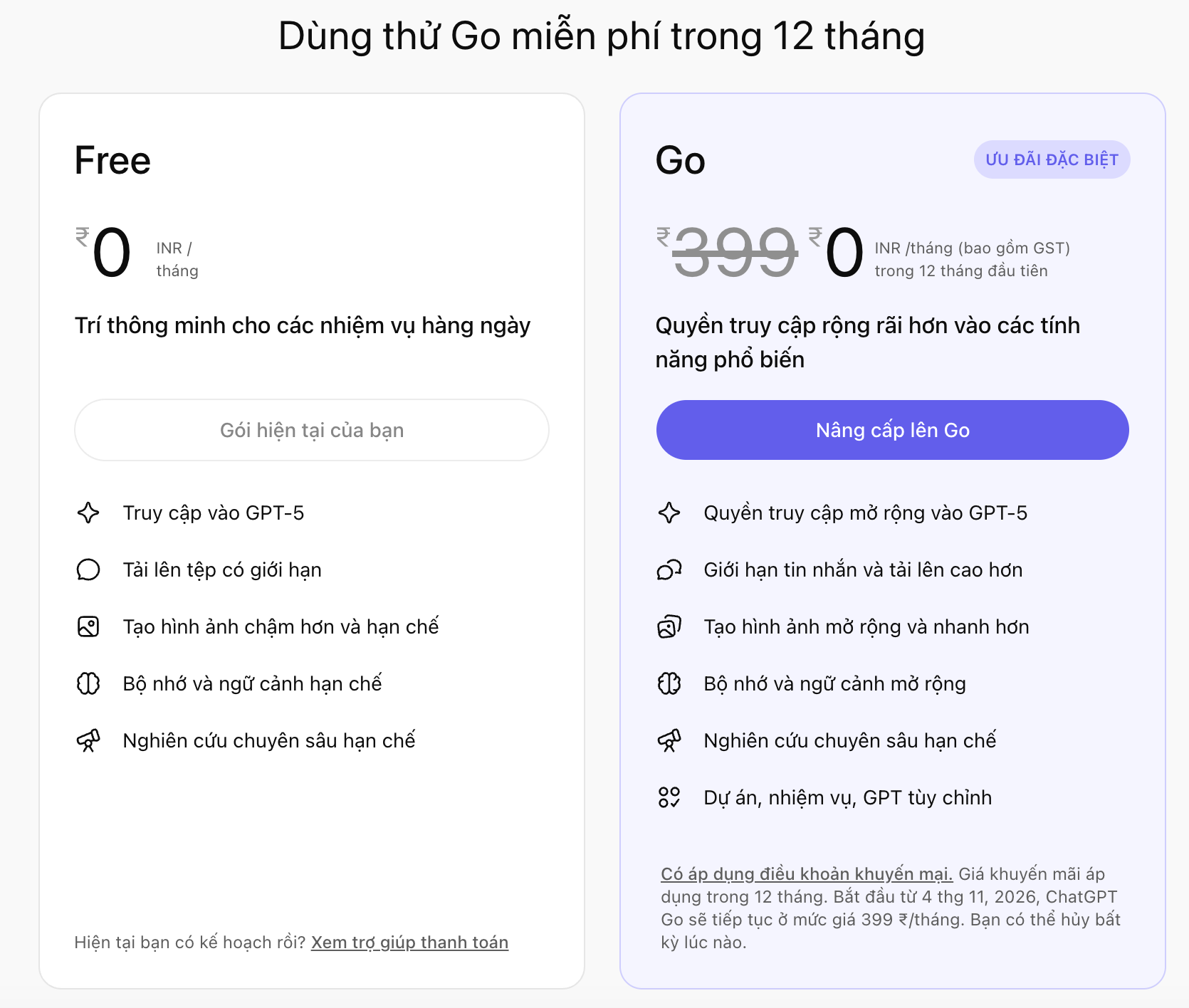 OpenAI đang triển khai chương trình ưu đãi ChatGPT Go miễn phí 1 năm tại một số quốc gia, trong đó có Ấn Độ. Dưới đây là hướng dẫn chi tiết để bạn có thể đăng ký và kích hoạt gói này — ngay cả khi bạn không ở Ấn Độ 🇮🇳