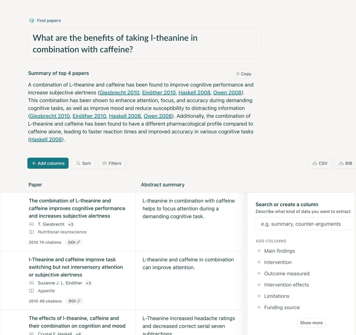 - Elicit sẽ tạo một bảng chứa các bài báo đó, bạn có thể thêm các cột để trích xuất thông tin cụ thể.