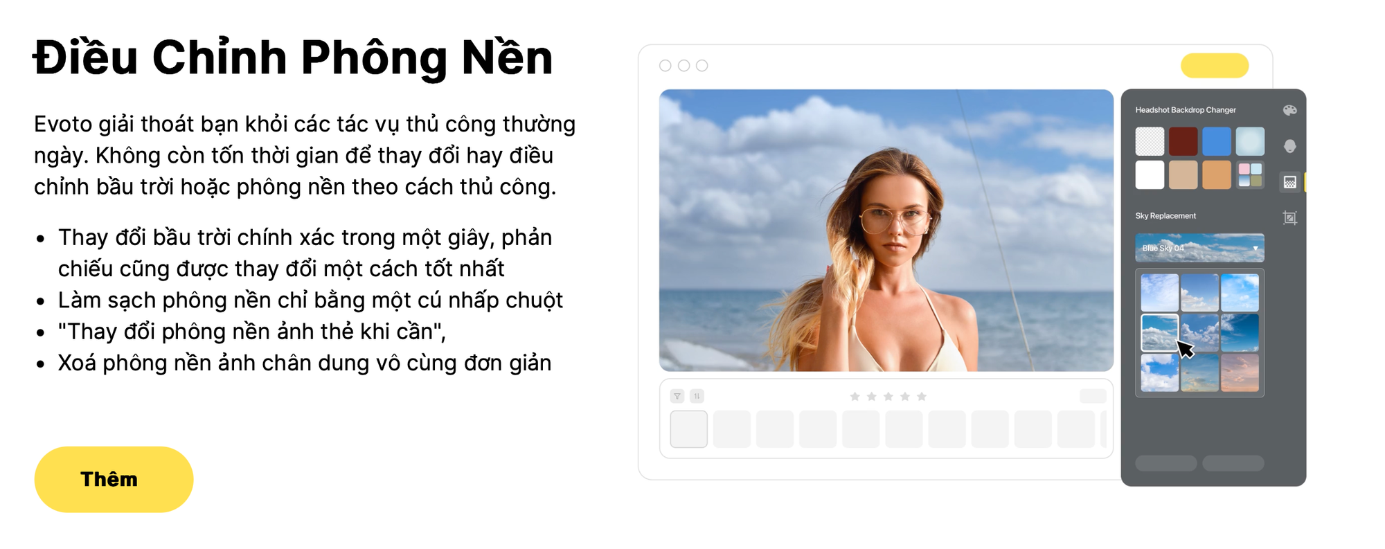 - Nâng cao chất lượng ảnh: Evoto cho phép bạn chỉnh sửa ảnh với độ chính xác cao và chất lượng vượt trội.