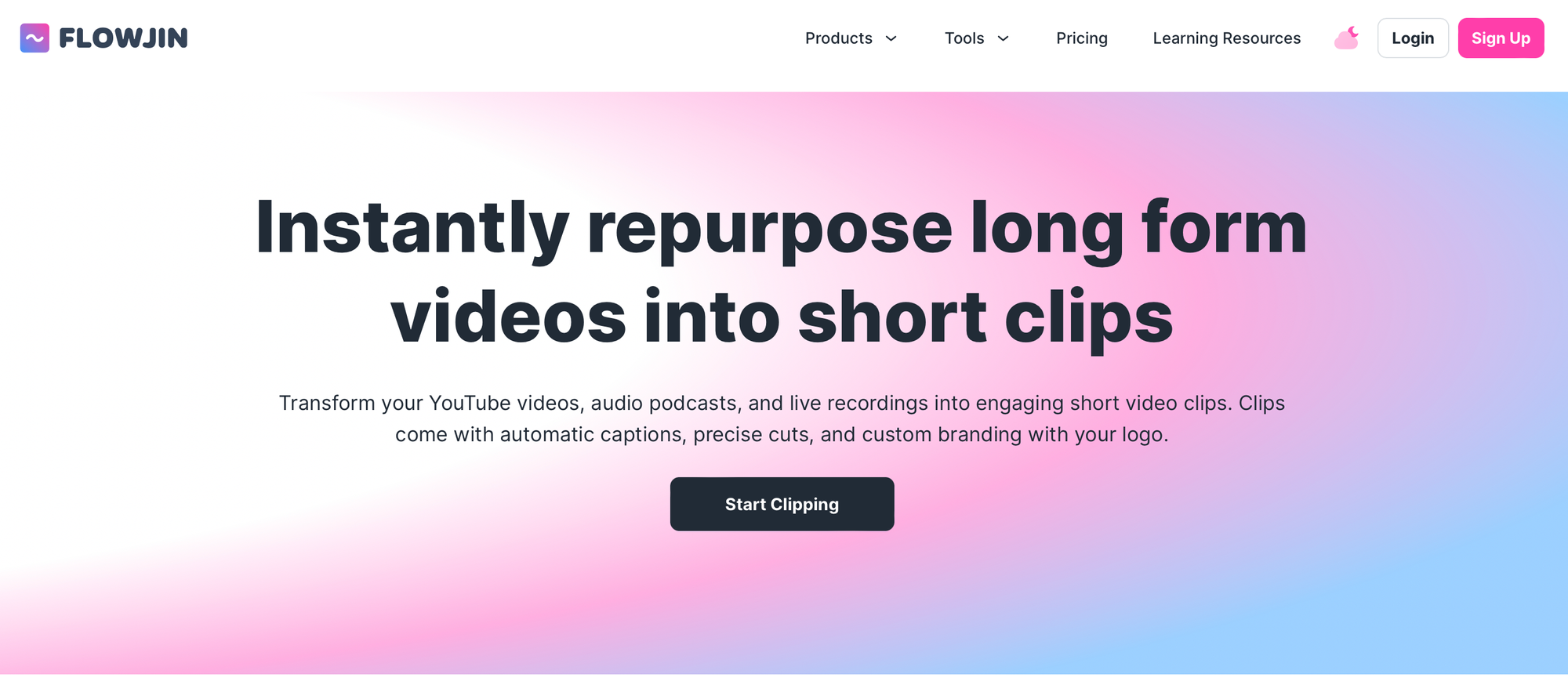 FlowJin là một công cụ AI tiên tiến giúp bạn biến đổi video dài thành những clip ngắn, hấp dẫn chỉ trong vài phút. Sử dụng FlowJin, bạn có thể tiết kiệm thời gian và công sức sáng tạo nội dung, đồng thời thu hút nhiều người xem hơn trên các nền tảng mạng xã hội.