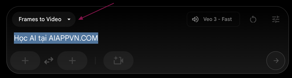 - Trong giao diện Flow, chọn tính năng "Tạo video từ khung hình đầu tiên" (first-frame)
