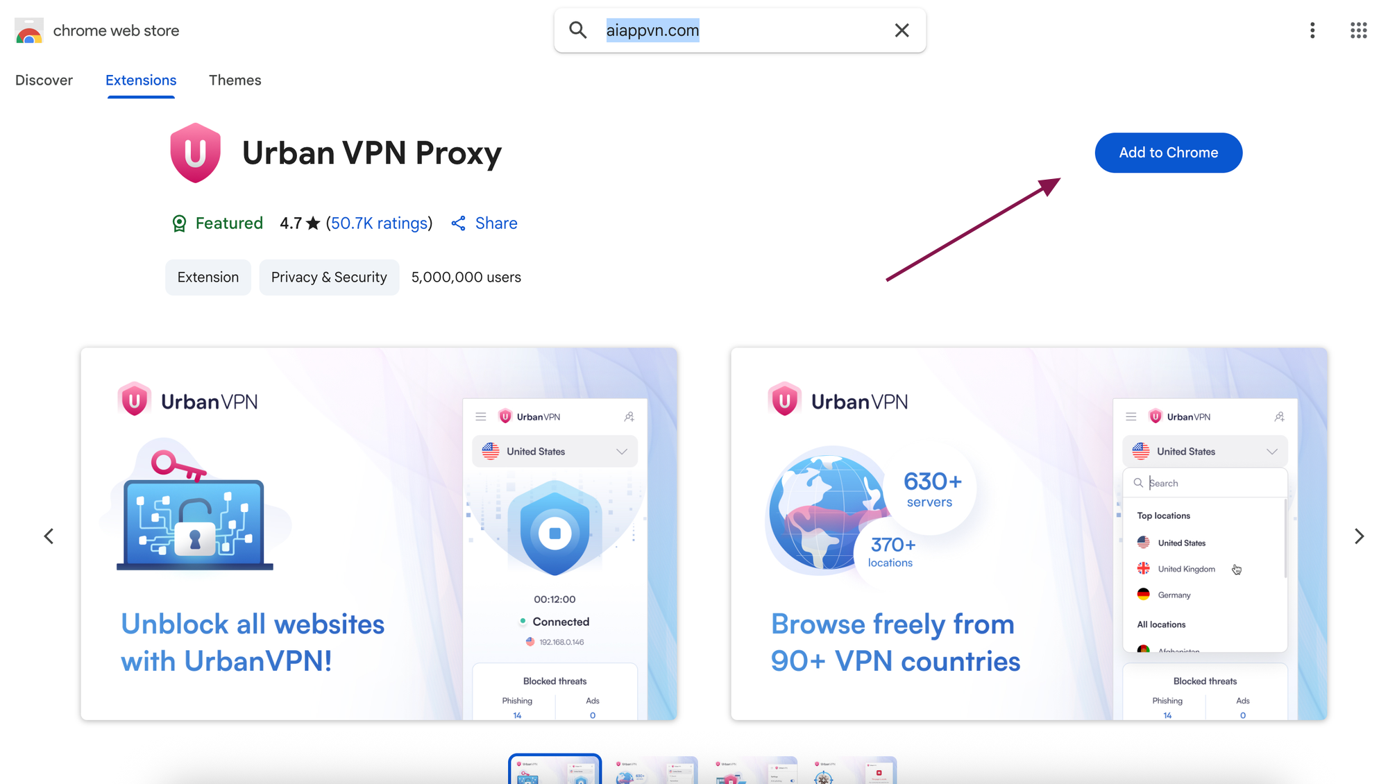 - Truy cập Chrome Web Store, tìm tiện ích "VPN Urban Proxy"