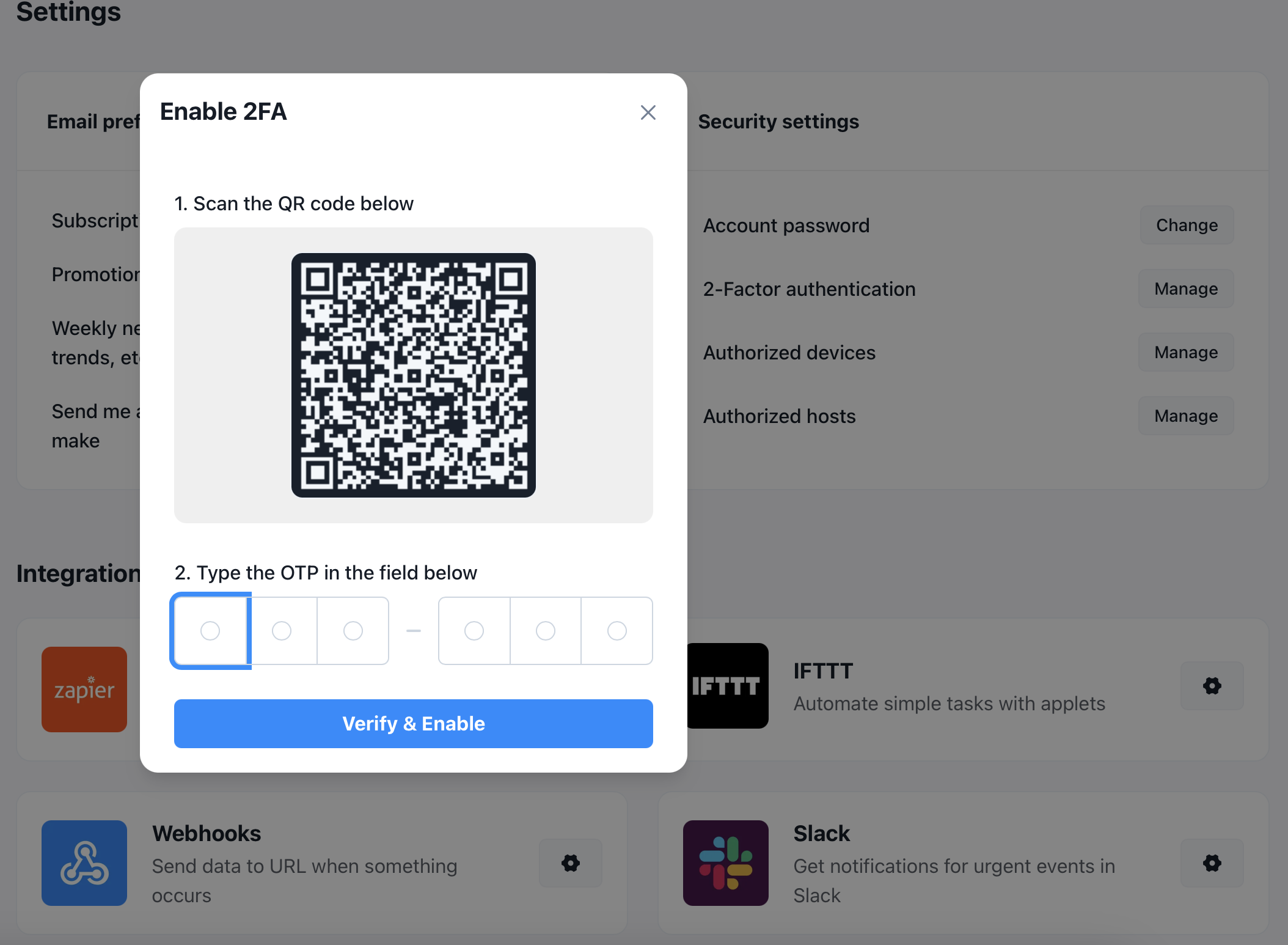 Bật xác thực hai yếu tố (2FA) để tăng cường bảo mật tài khoản của bạn.