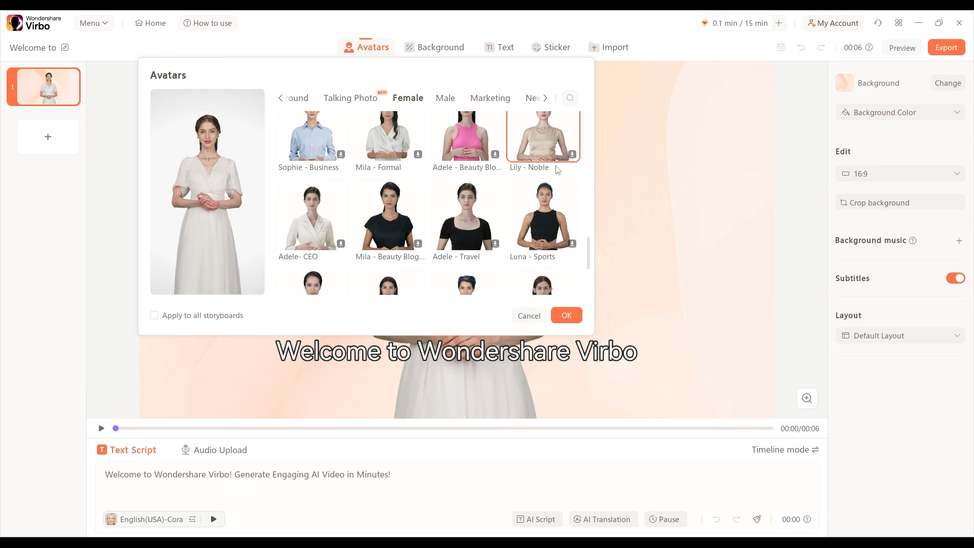 - Chọn avatar có nền cố định: Để có cái nhìn tự nhiên hơn, hãy chọn avatar với nền cố định từ danh sách. Điều này giúp video trông chuyên nghiệp hơn.