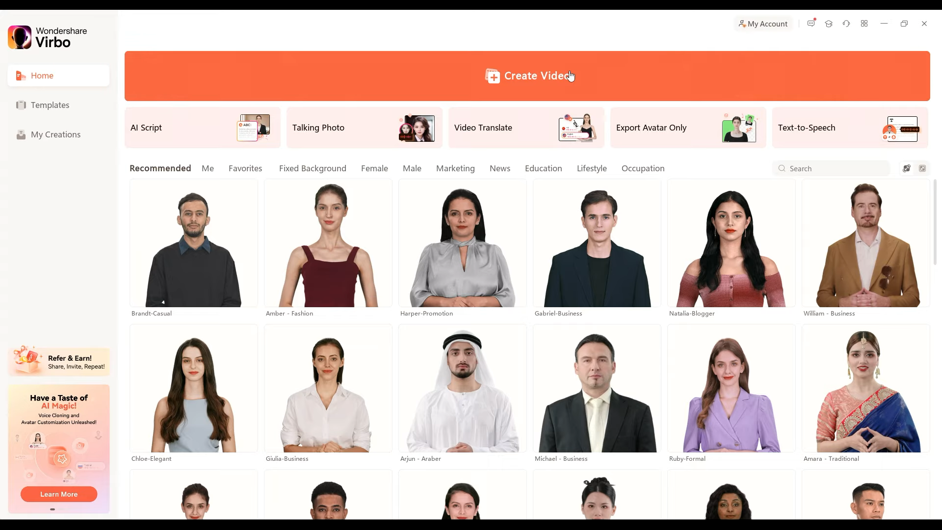 - Làm quen với giao diện: Khi bạn đã đăng nhập thành công, hãy dành một vài phút để khám phá các tính năng chính của ứng dụng. Bạn sẽ thấy các tab như “Create Video”, “Templates” và “My Creations”. 👀