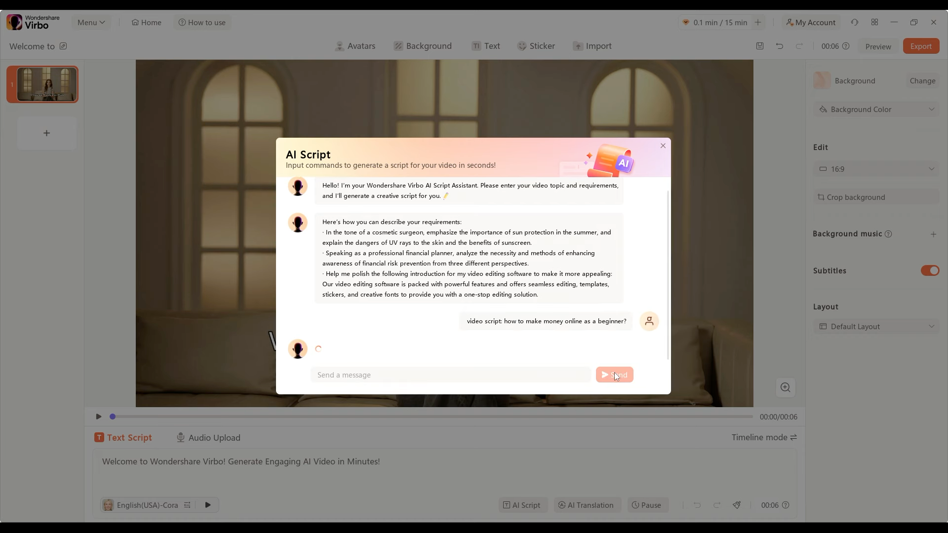 - Kiểm tra và chỉnh sửa: Sau khi nhập kịch bản, hãy kiểm tra lại để đảm bảo không có lỗi chính tả hoặc ngữ pháp. Bạn có thể chỉnh sửa trực tiếp trong ô nhập liệu.