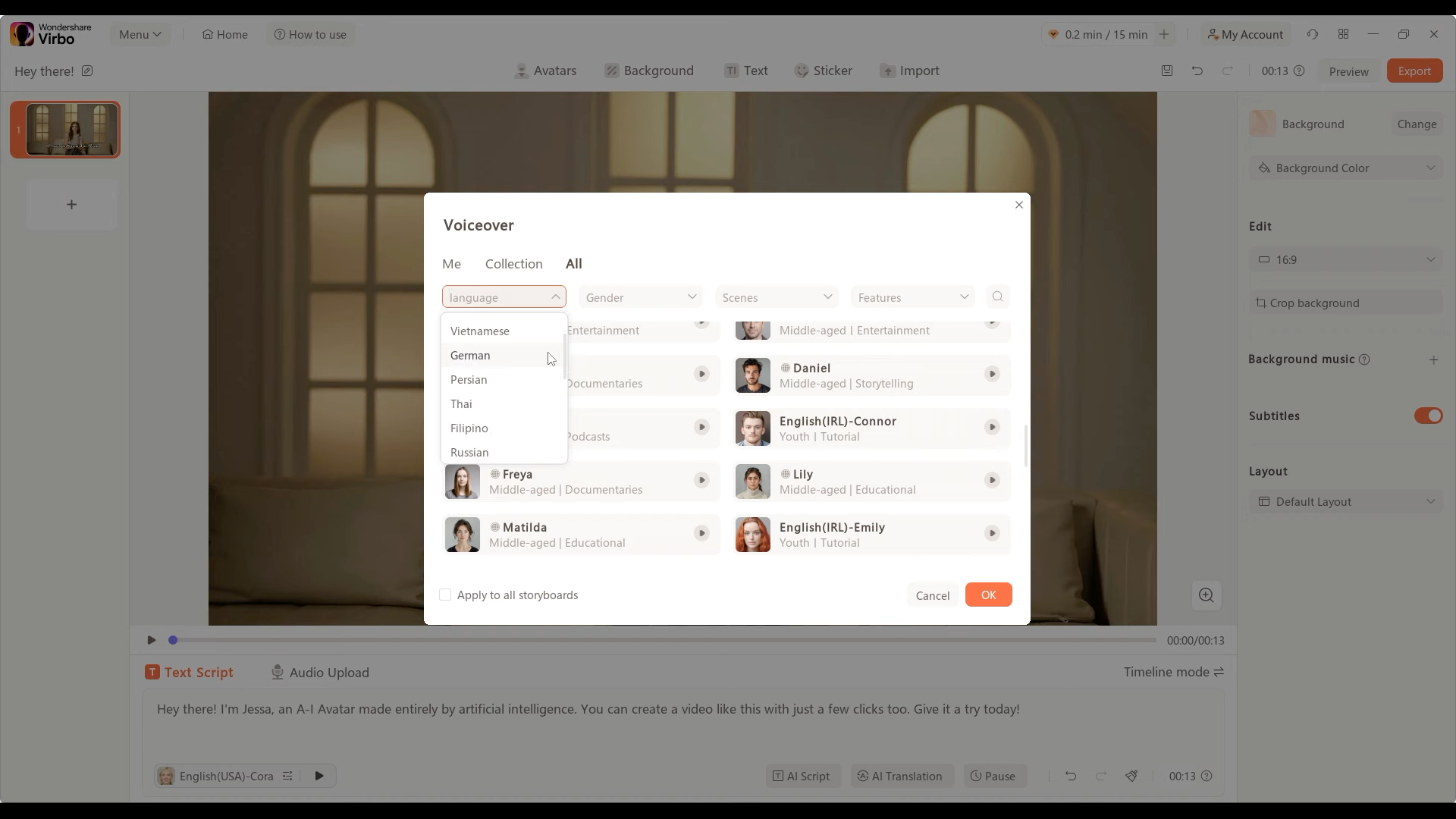 3.1 Lựa chọn giọng nói cho video