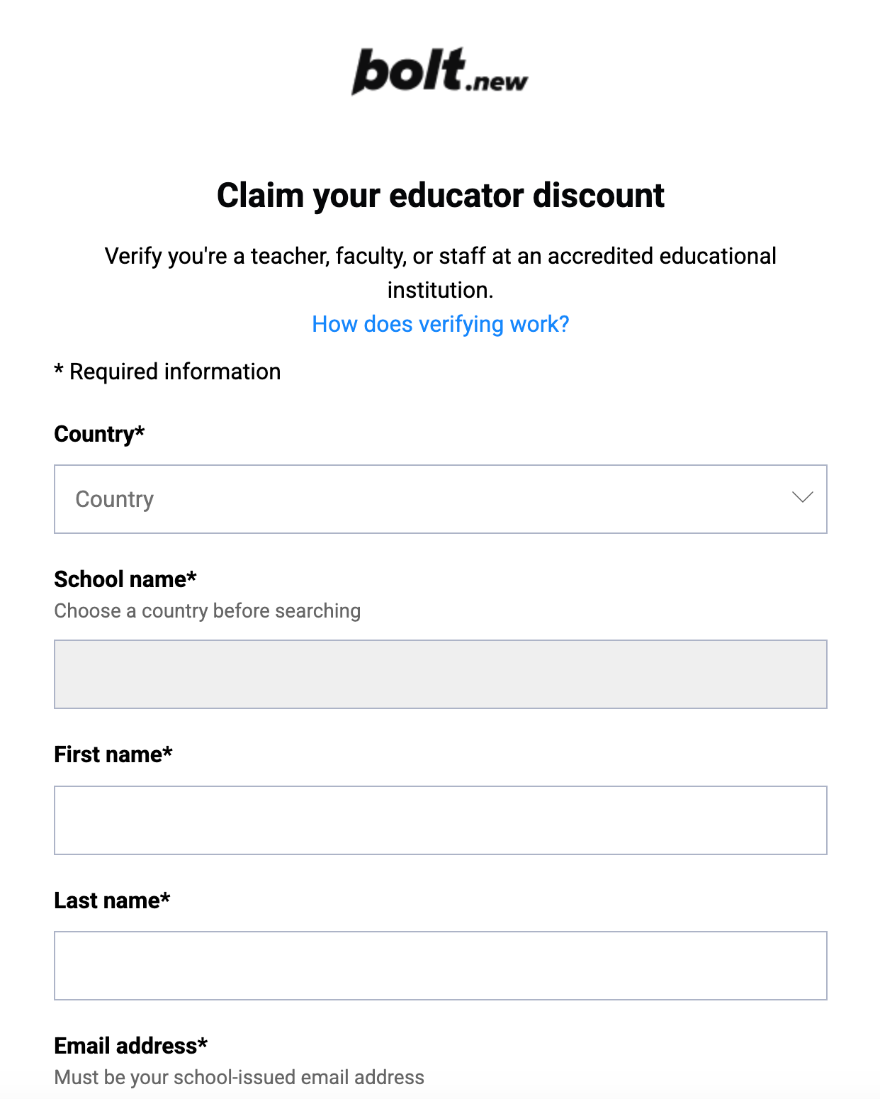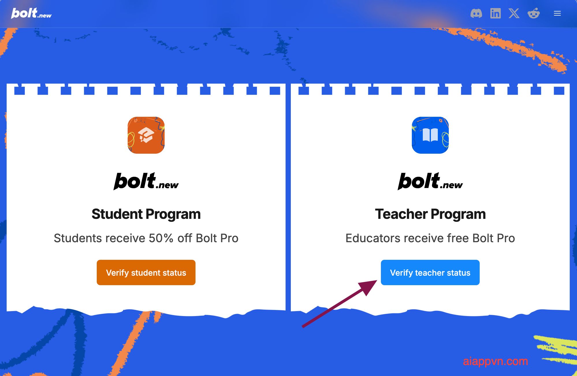 👉 https://bolt.new/education-discount (hoặc mục “Education” trên trang chủ)