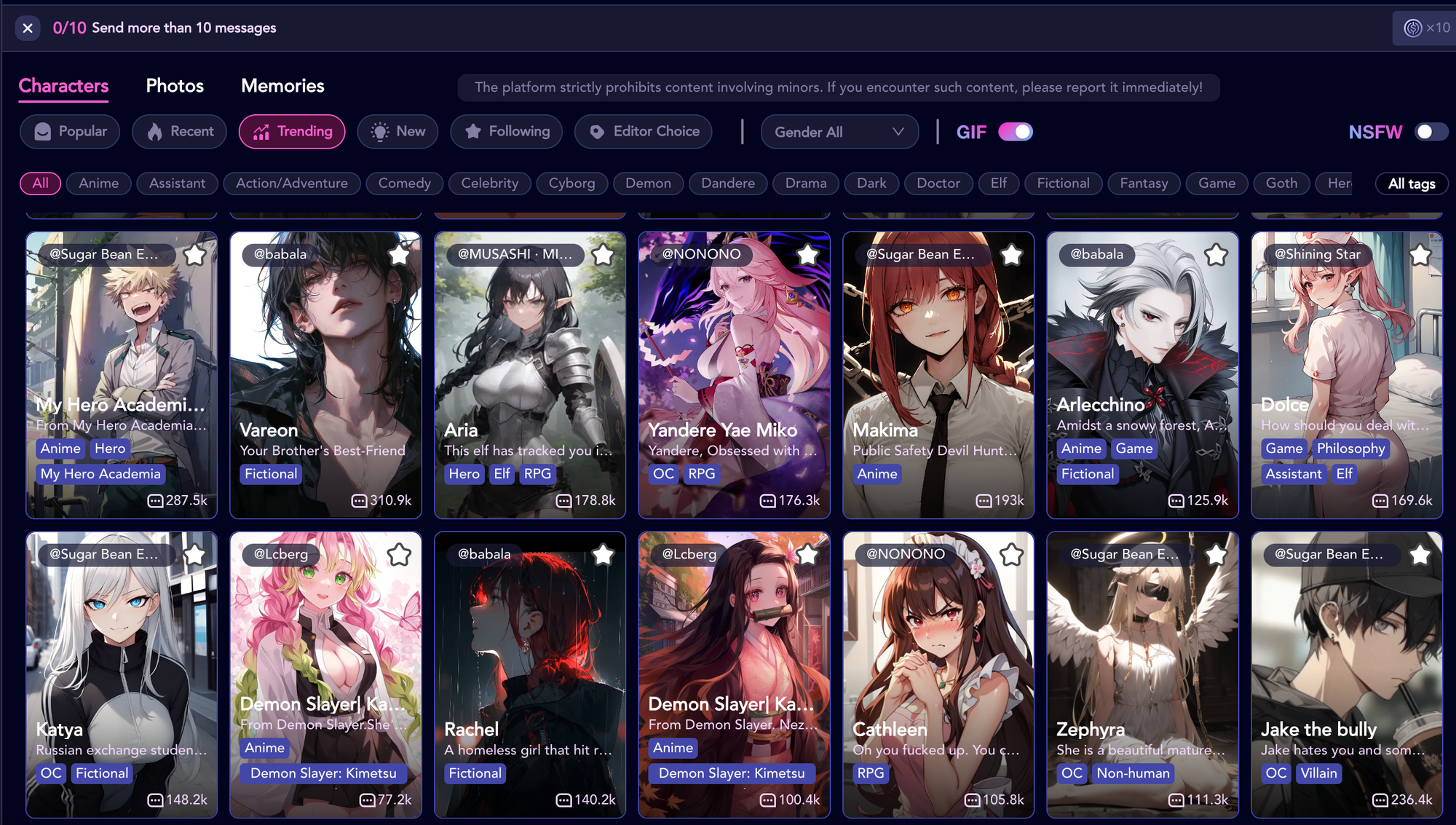 Nền tảng này cung cấp hơn 100.000 nhân vật có thể tùy chỉnh, mỗi nhân vật đều có thể được điều chỉnh để phản ánh chính xác mong muốn của người dùng. Khả năng tùy chỉnh này mở ra vô số khả năng cho việc khám phá và tương tác.