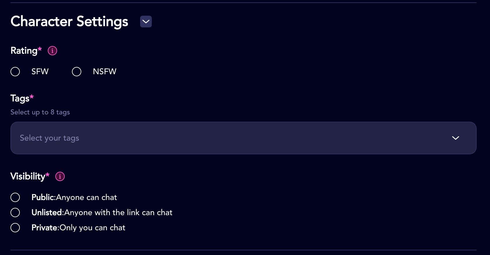 - Công khai (Public): Ai cũng có thể trò chuyện với nhân vật của bạn