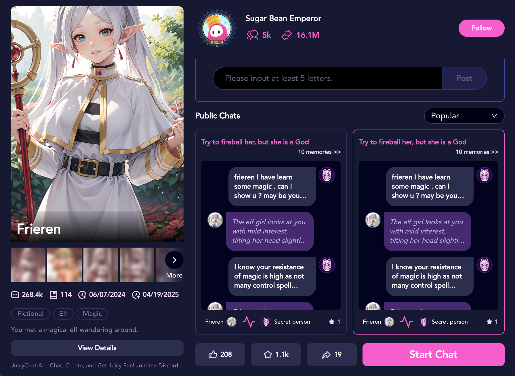 JuicyChat AI được thiết kế với sứ mệnh tạo ra một không gian nơi người dùng có thể tự do sáng tạo và tương tác với các nhân vật AI được cá nhân hóa. Với thư viện hơn 100.000 nhân vật có thể tùy chỉnh, nền tảng này đáp ứng nhu cầu ngày càng tăng về các trải nghiệm AI cá nhân hóa, đặc biệt trong lĩnh vực giải trí dành cho người lớn.