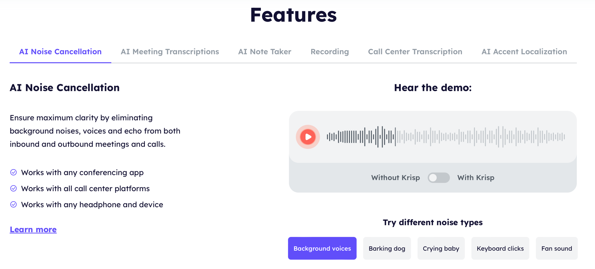Các tính năng của Krisp