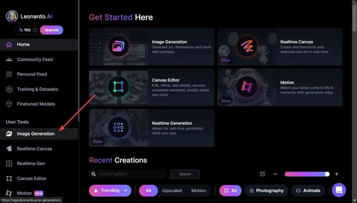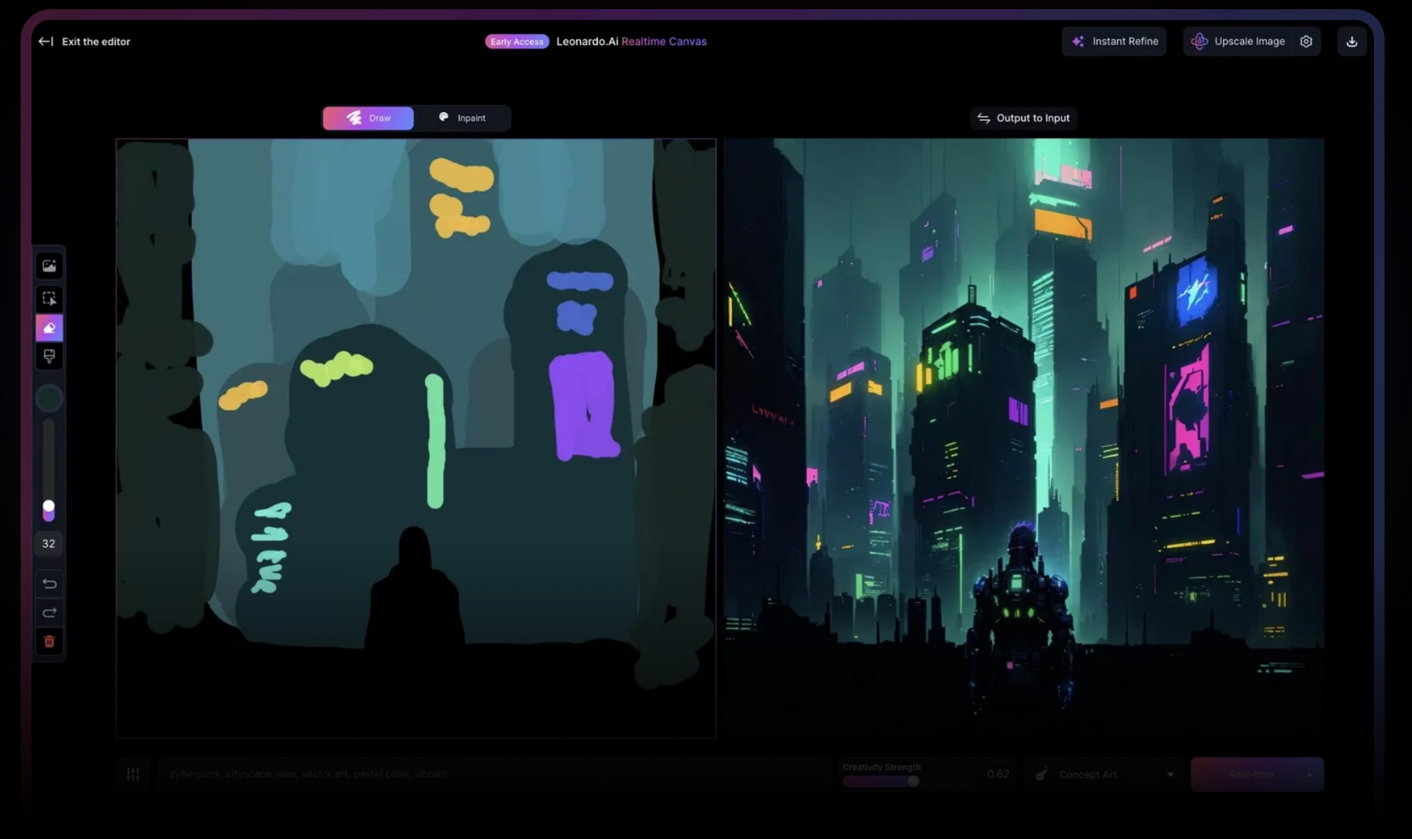- Truy cập Real-time Canvas: Từ trang chủ Leonardo.AI, chọn "Real-time Canvas" trên thanh công cụ bên trái.