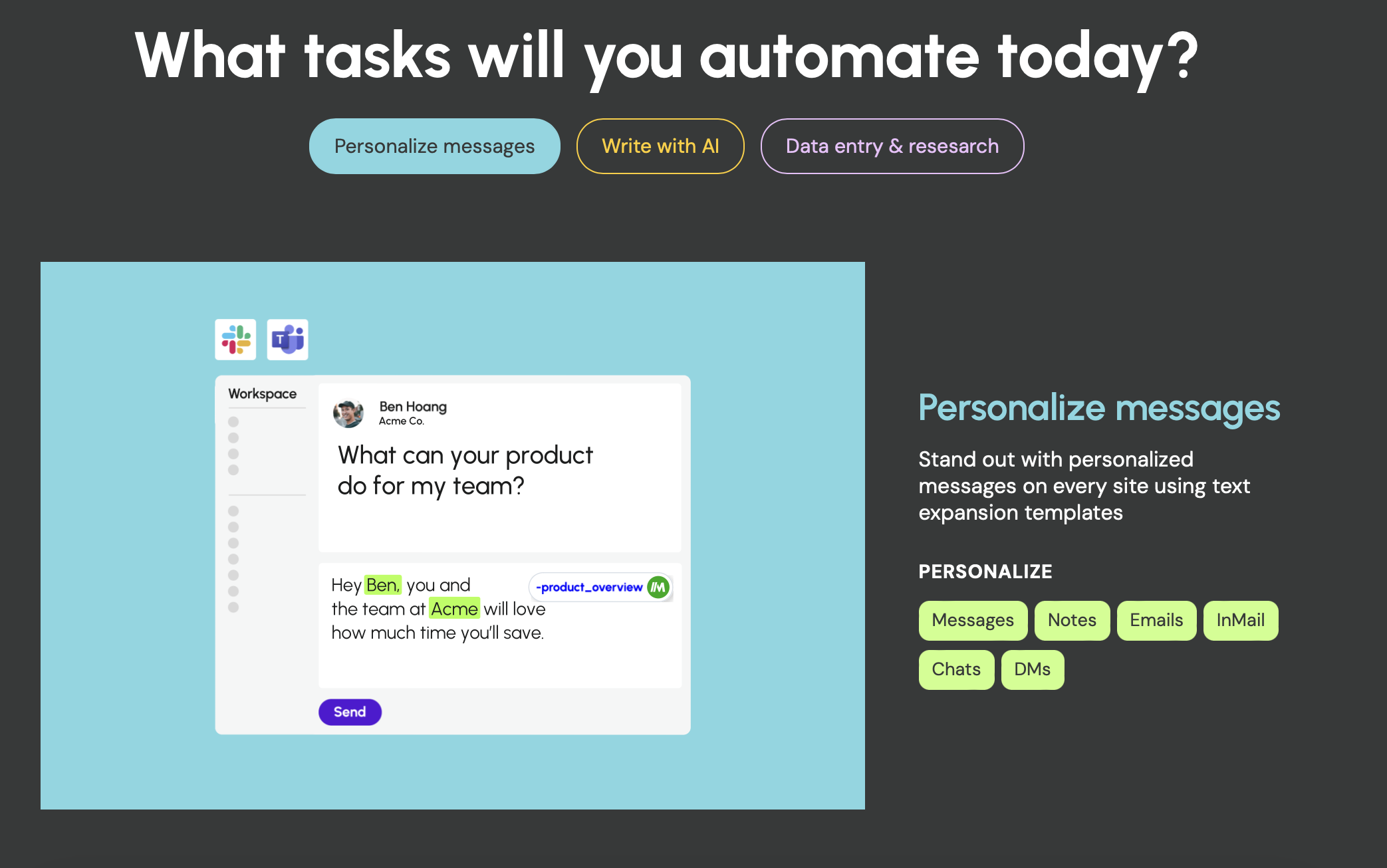 - Cá nhân hóa tin nhắn: Nổi bật với các tin nhắn được cá nhân hóa trên mọi trang web bằng cách sử dụng mẫu mở rộng văn bản.