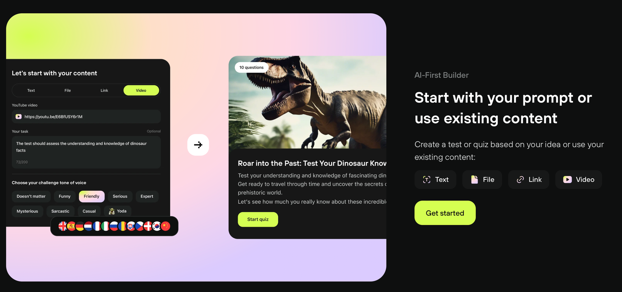 - AI-First Builder: Tạo nội dung từ ý tưởng hoặc nội dung có sẵn (văn bản, tệp, liên kết, video) bằng công cụ AI tích hợp.