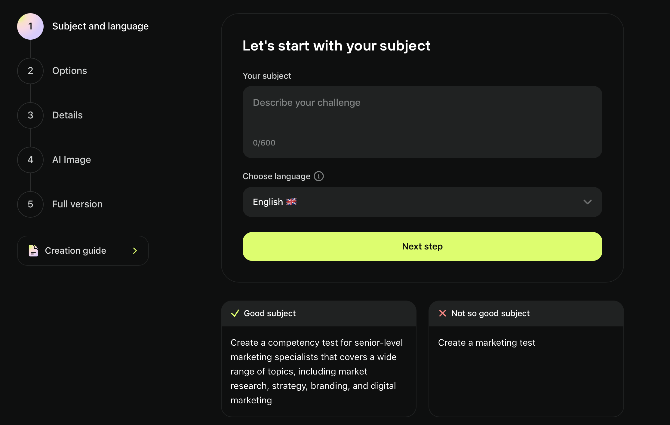 - Nhập chủ đề của bạn (ví dụ: "Kiểm tra kiến thức tiếp thị cấp cao").