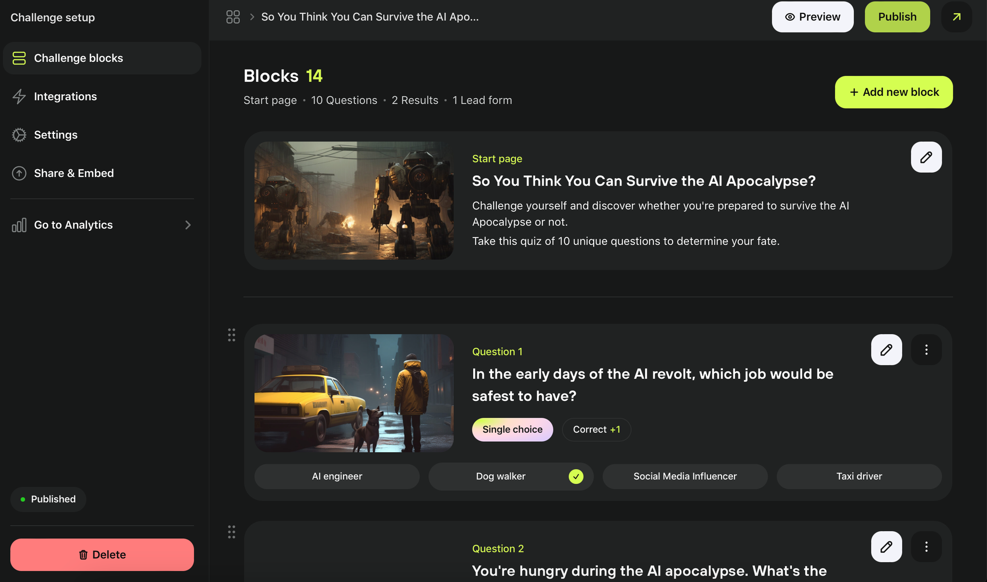 - Nhấp vào nút "Publish" (Xuất bản) để chia sẻ thử thách của bạn.