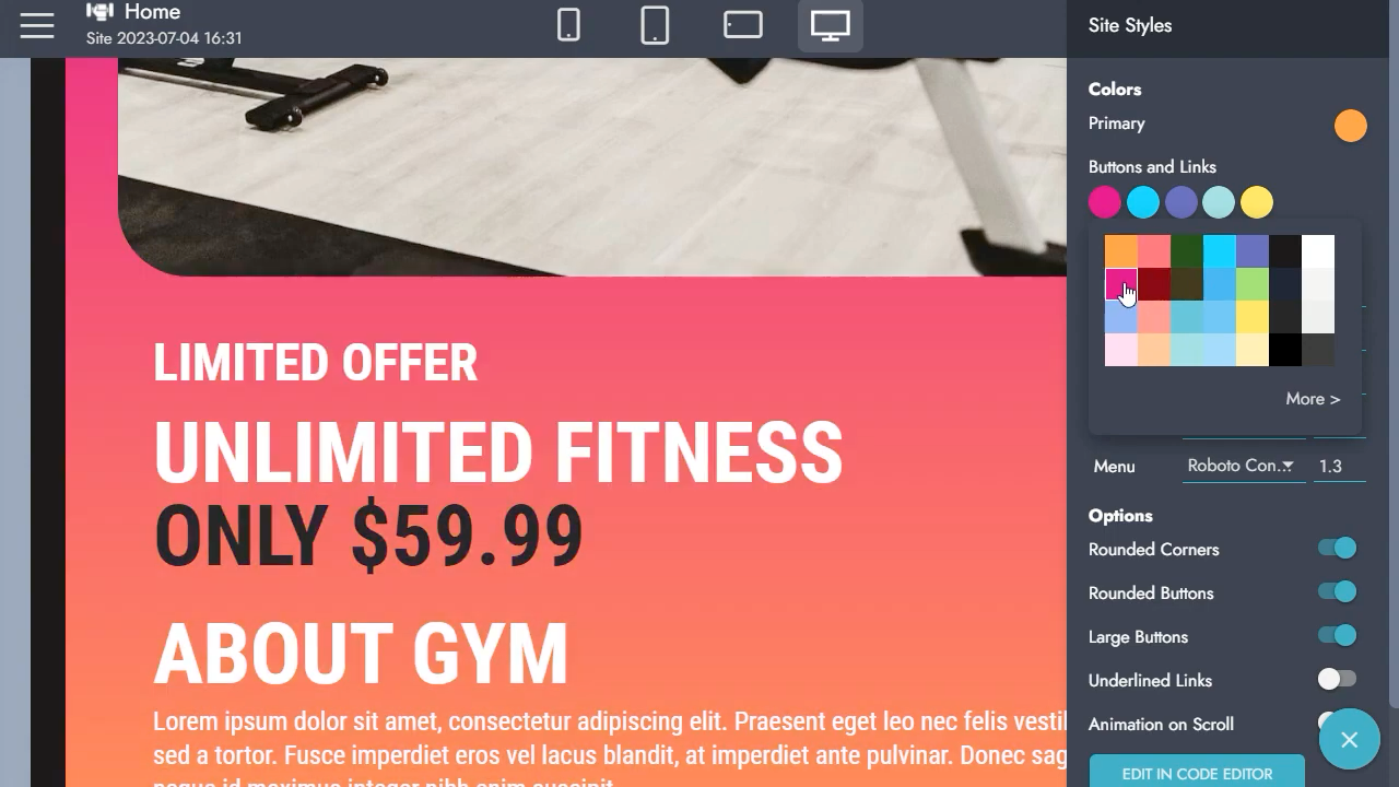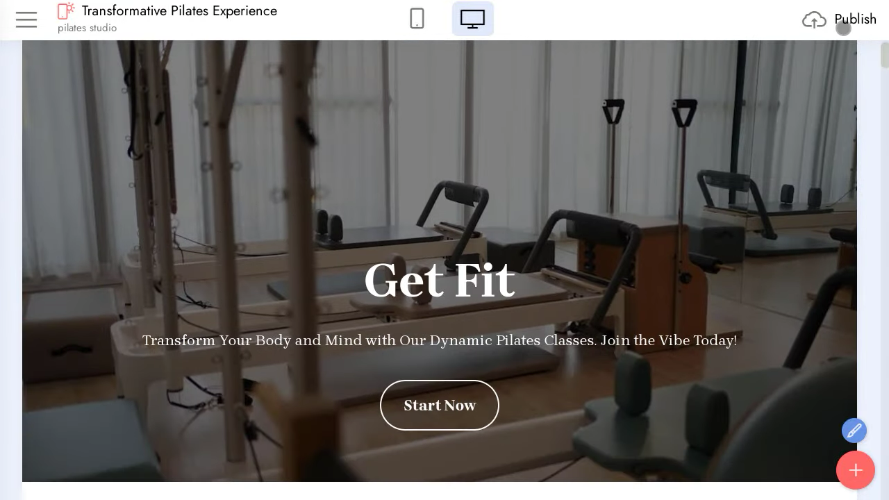 - Tùy chỉnh nội dung: Nhấp vào từng khối nội dung để thay đổi văn bản, hình ảnh, màu sắc và phông chữ. Thêm nội dung hấp dẫn về phòng tập Pilates của bạn, chẳng hạn như: