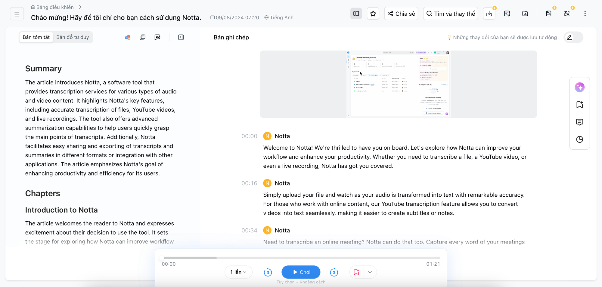 Dưới đây là cách dùng Notta.ai để chuyển file ghi âm thành văn bản online cho một cuộc họp Google Meet, dựa trên video hướng dẫn: