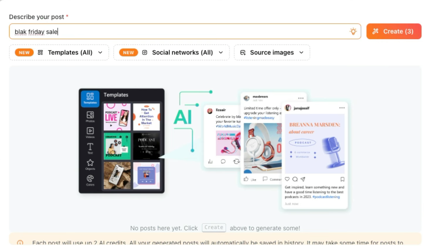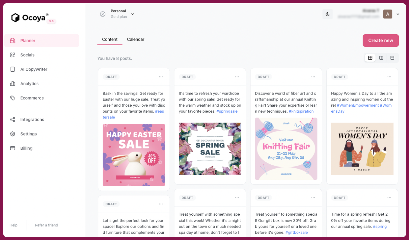- Ocoya cung cấp tính năng "Create with AI" giúp bạn tạo bài đăng nhanh chóng và dễ dàng bằng cách sử dụng trí tuệ nhân tạo (AI).