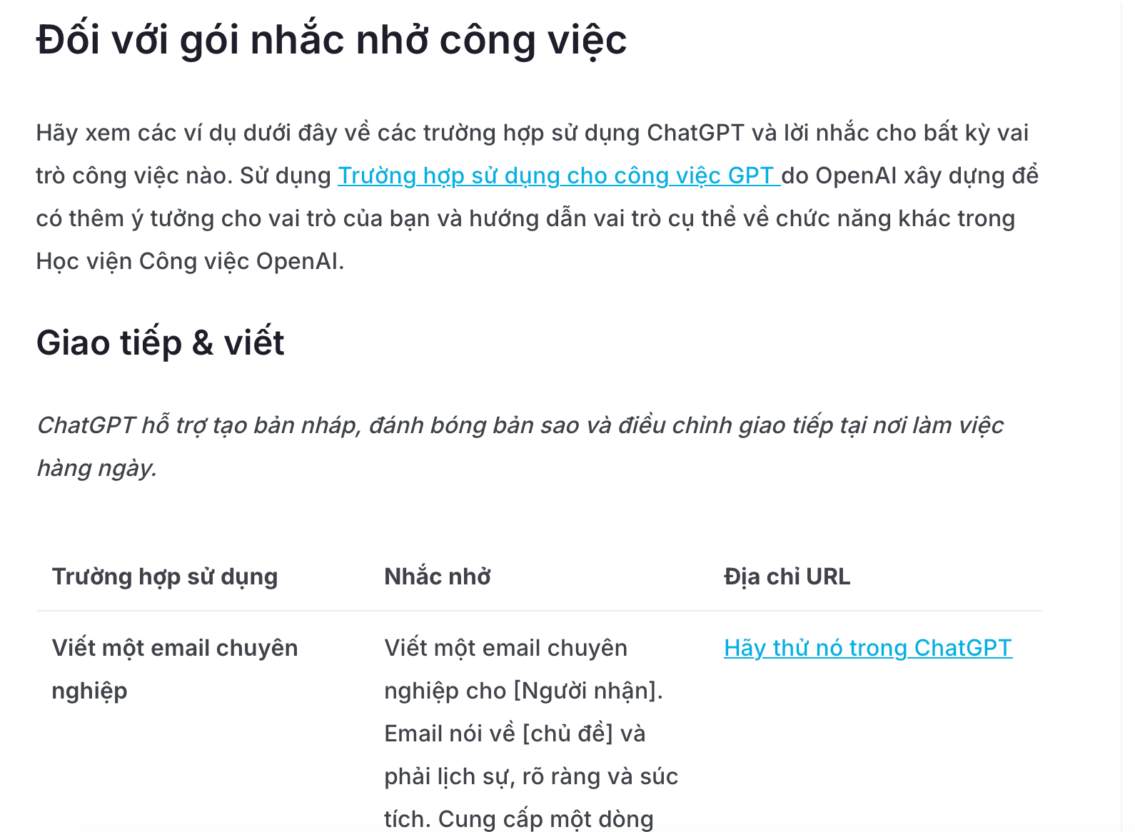 - Chuẩn hoá output cho team: khi cả team dùng cùng set prompt, kết quả nhất quán hơn (tone, cấu trúc, định dạng).