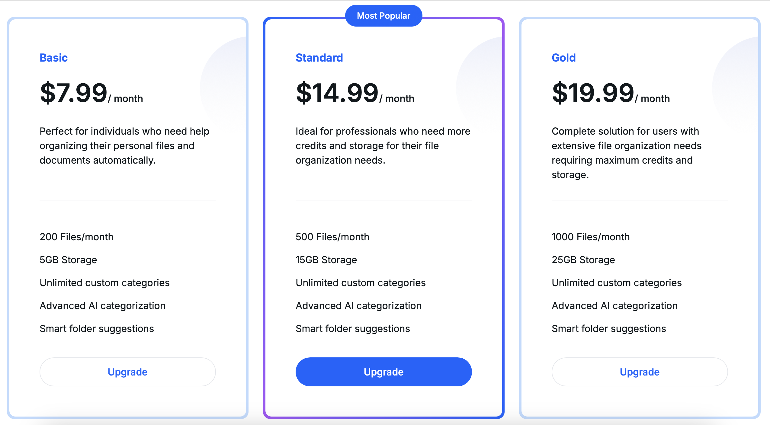 - AI thông minh: Công nghệ AI tiên tiến phân tích và phân loại các tập tin của bạn ngay lập tức.