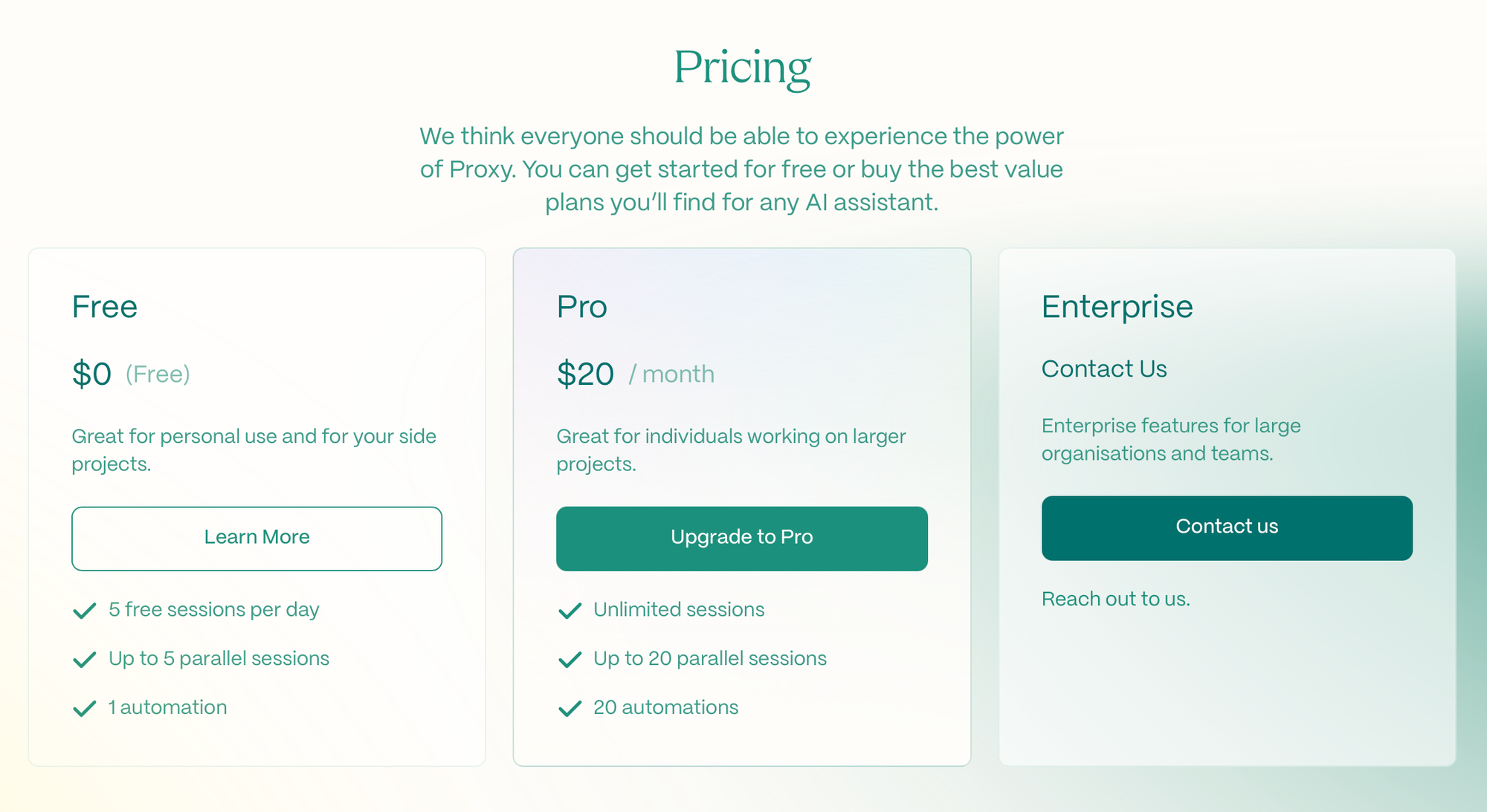 - Về chi phí, Proxy hoàn toàn miễn phí khởi đầu (với gói Pro chỉ $20/tháng) so với Operator có giá khoảng $200/tháng.