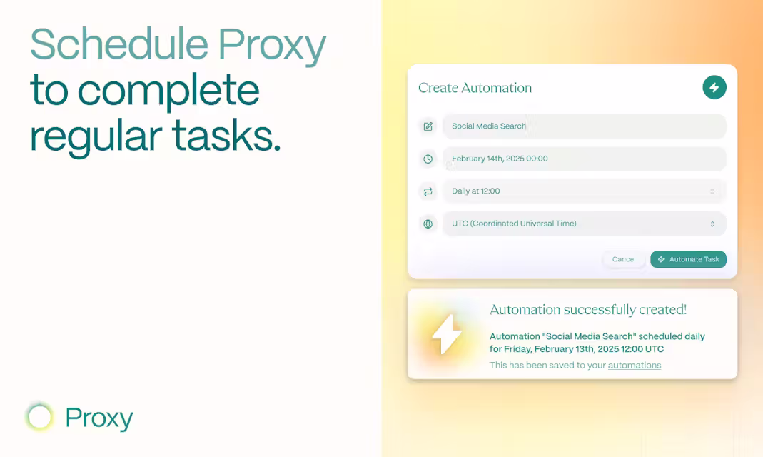 Không chỉ thực hiện các nhiệm vụ theo lệnh, Proxy còn học hỏi từ các tác vụ lặp lại để trở nên hiệu quả hơn theo thời gian. Ví dụ, bạn có thể đặt lịch gửi báo cáo hàng tuần mà không cần can thiệp thêm.