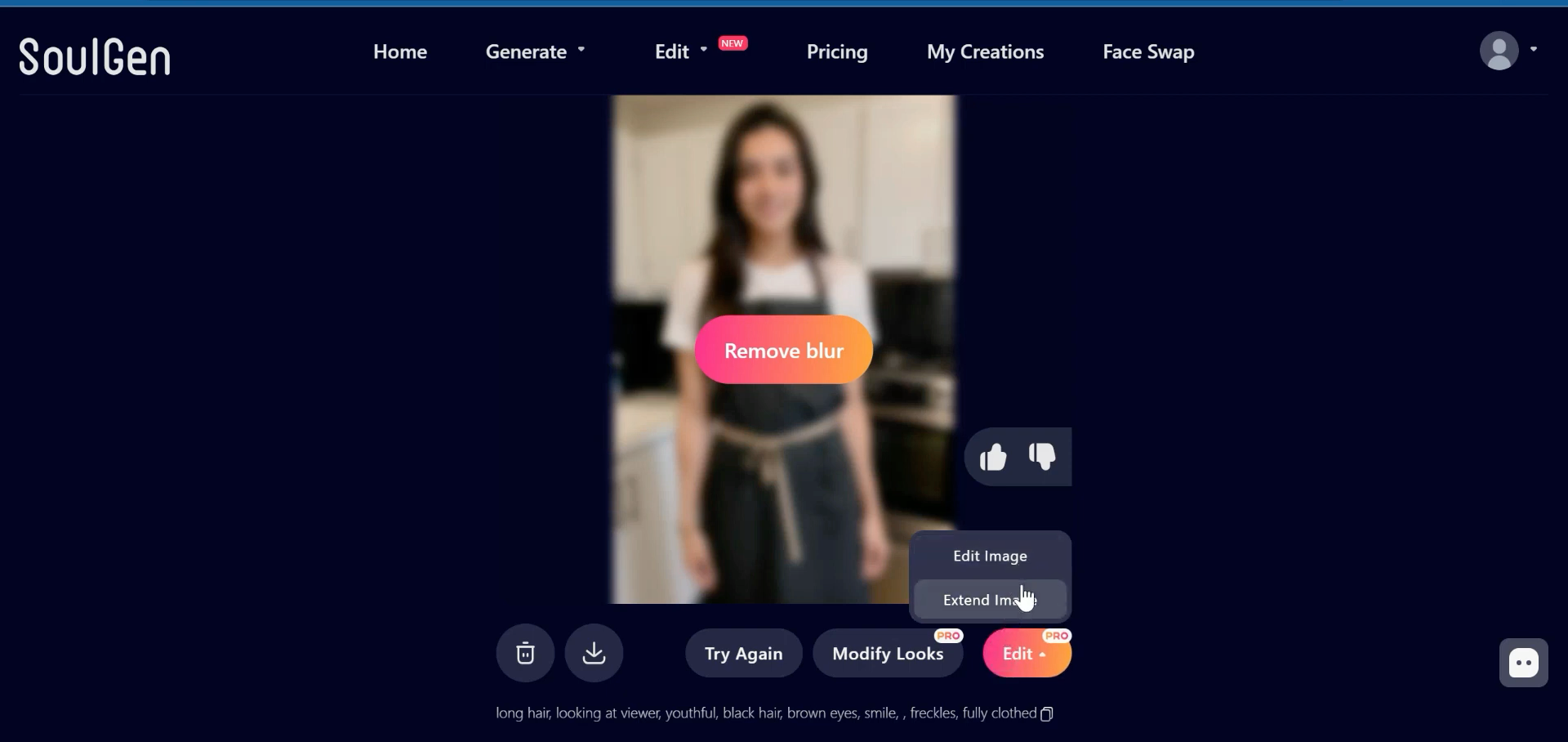 - Chỉ cần miêu tả cô gái trong mơ của bạn, từ ngoại hình, trang phục đến cá tính, SoulGen AI sẽ mang nàng ấy bước ra khỏi thế giới tưởng tượng.