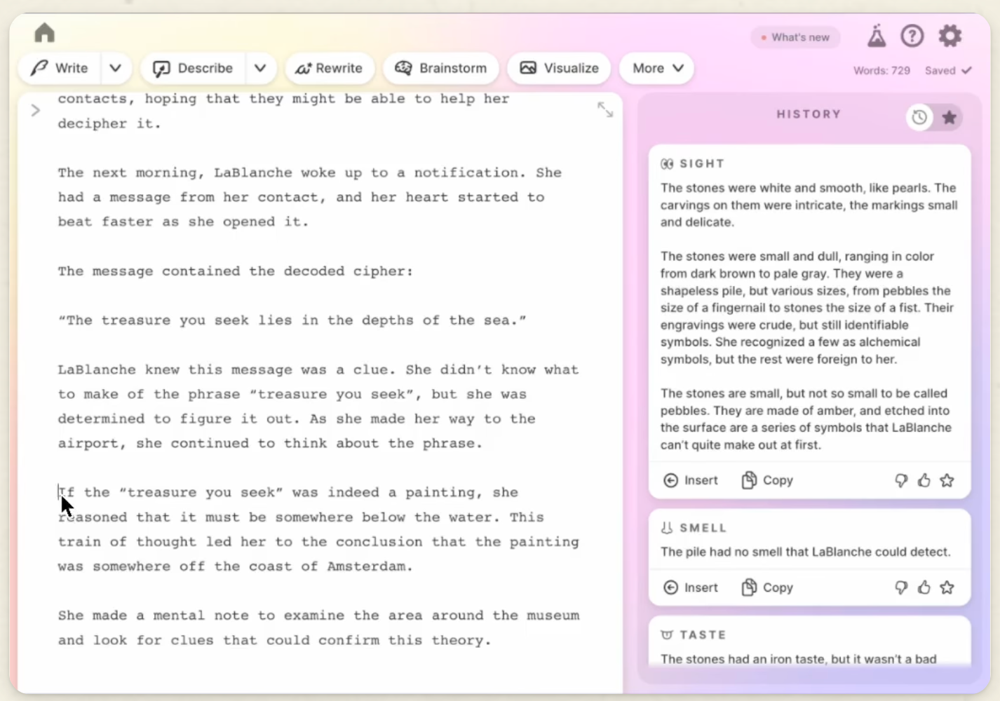 - Tả cảnh, miêu tả: Sudowrite giúp bạn diễn đạt các chi tiết bằng ngôn từ phong phú, sinh động, lôi cuốn người đọc vào thế giới của tác phẩm.