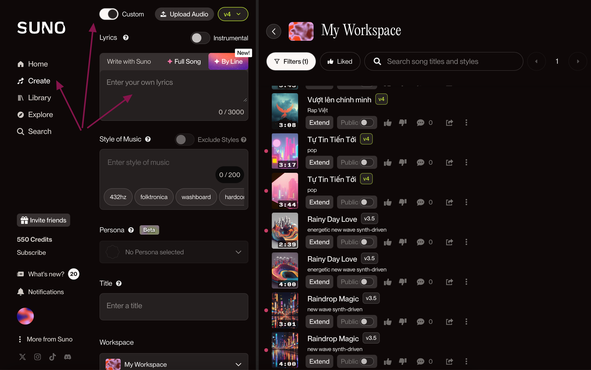 - Hỗ trợ đa nền tảng: Ngoài app Suno AI trên iOS/Android, bạn có thể dùng trên web.