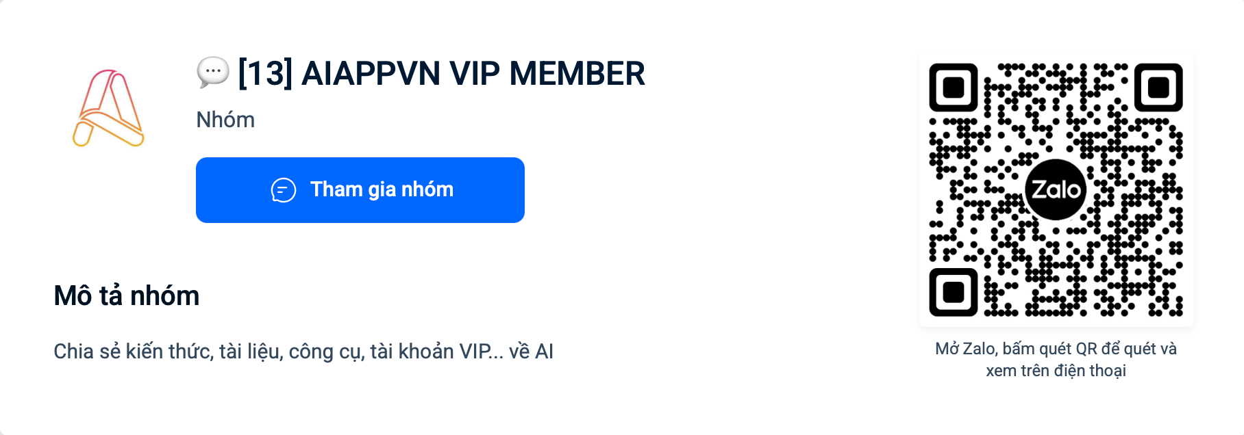 Chỉ cần tham gia nhóm Zalo và gửi email vào nhóm để được AIAppVN.com thêm vào team dùng thử GPT-5!