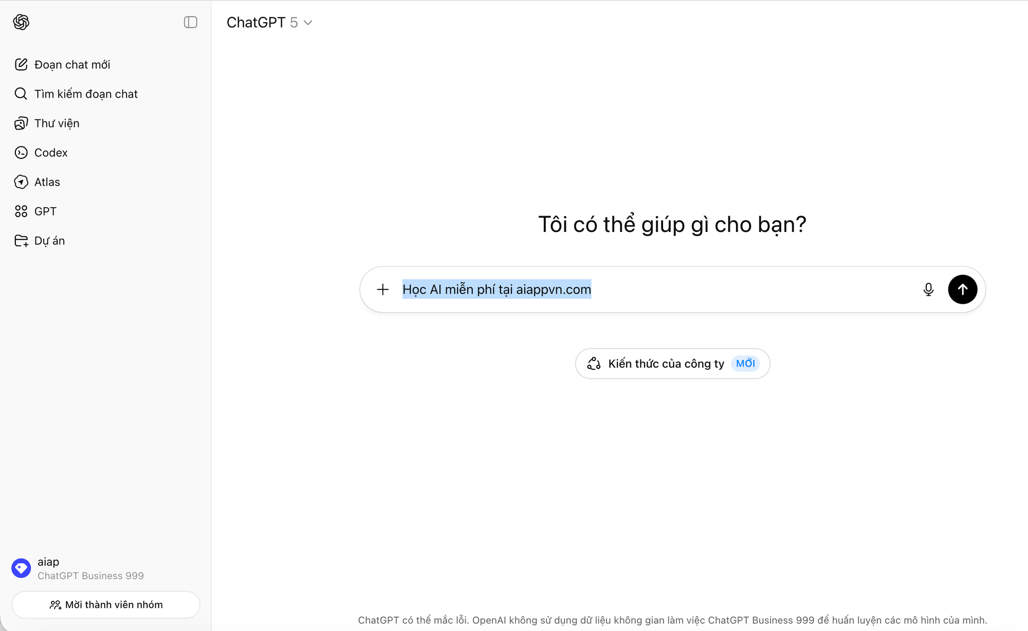 AIAppVN.com gửi tặng cộng đồng tài khoản ChatGPT Business miễn phí để mọi người trải nghiệm sức mạnh của GPT-5 – phiên bản thông minh và tốc độ vượt trội nhất hiện nay!