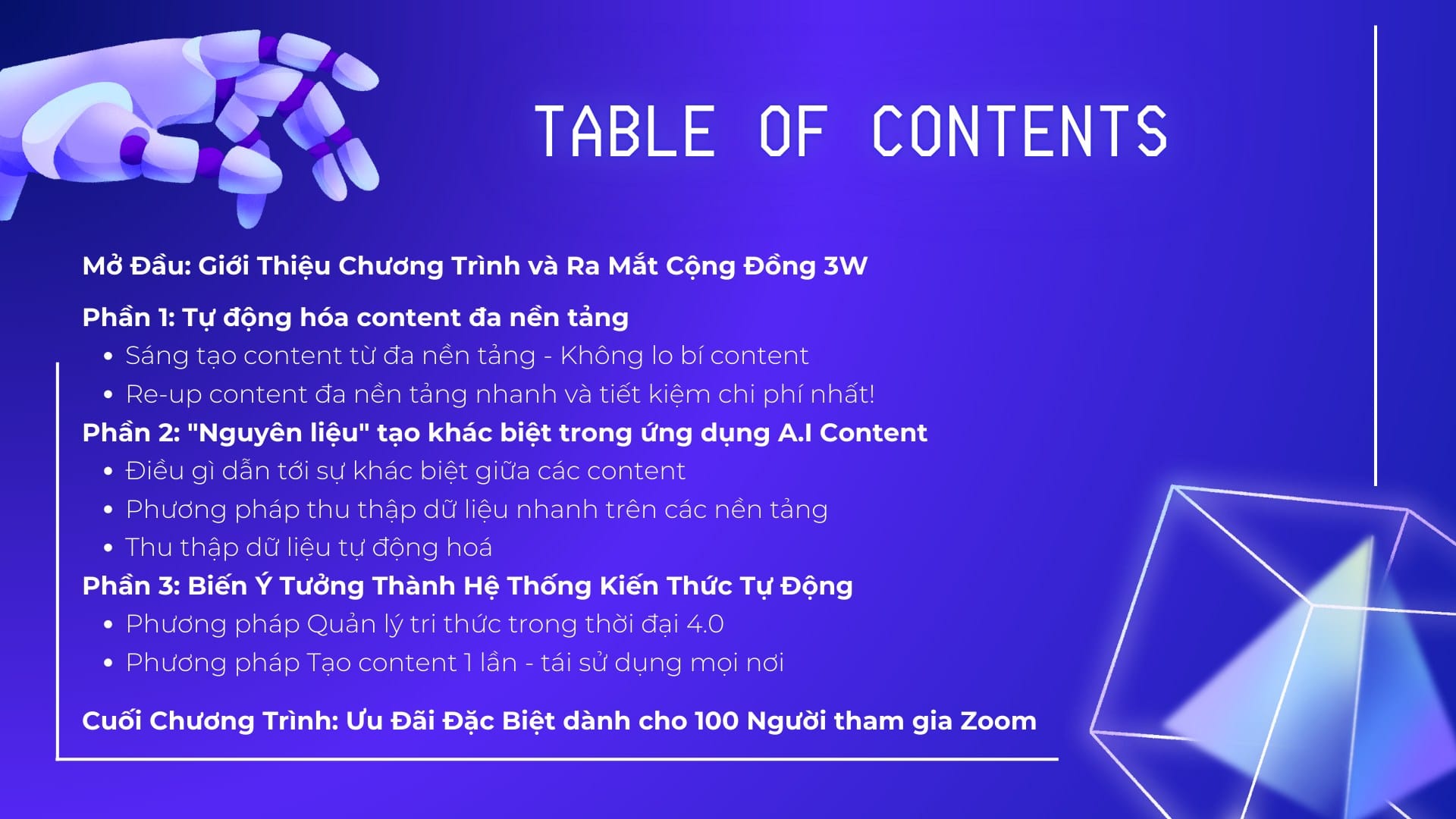 - Ra mắt chính thức cộng đồng 3W – nơi hội tụ những nhà sáng tạo, AI marketer và chuyên gia nội dung