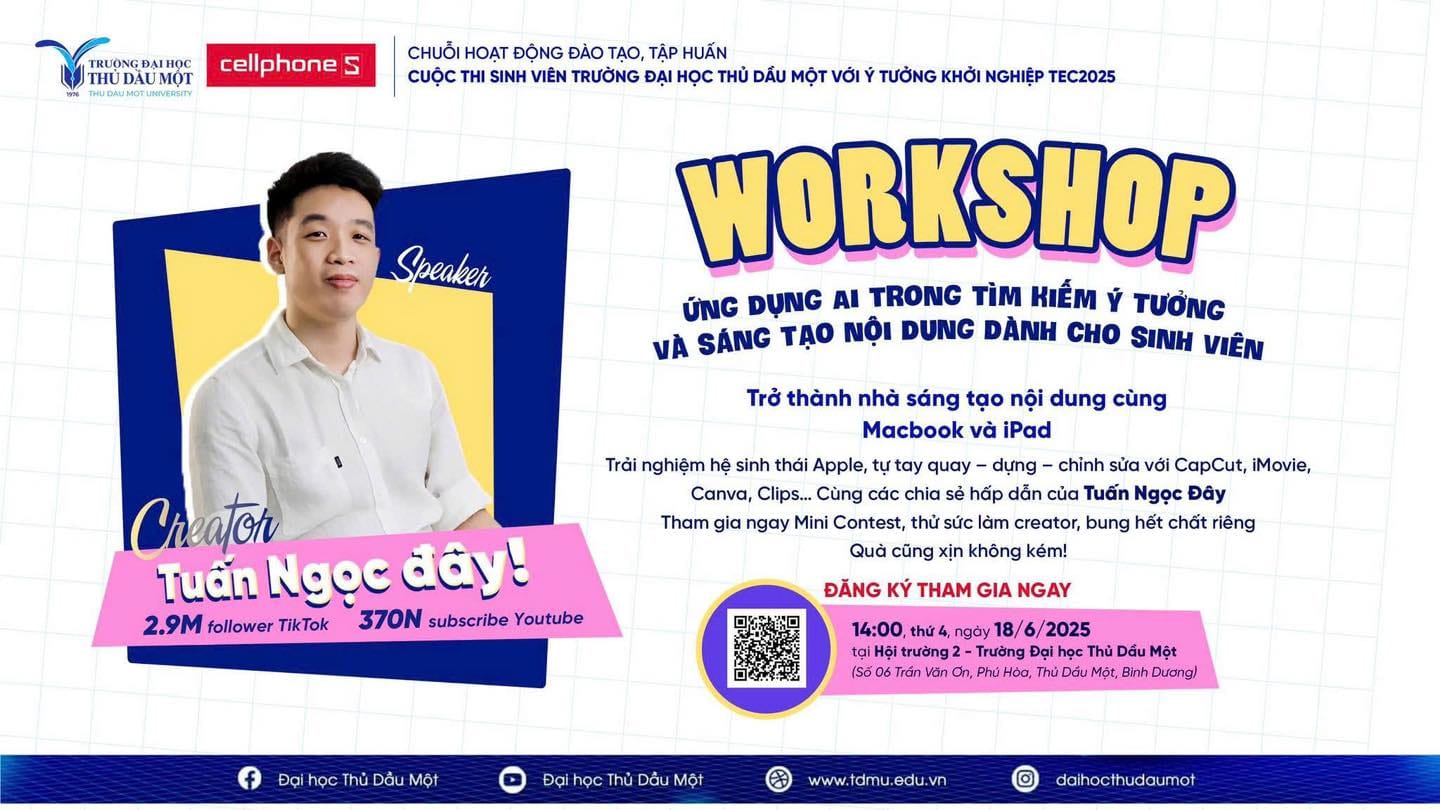 👉 Đừng lo! Workshop ứng dụng trí tuệ nhân tạo (AI) sẽ là “cánh tay phải” đắc lực giúp bạn bứt phá ý tưởng và sáng tạo nội dung số một cách đỉnh cao.